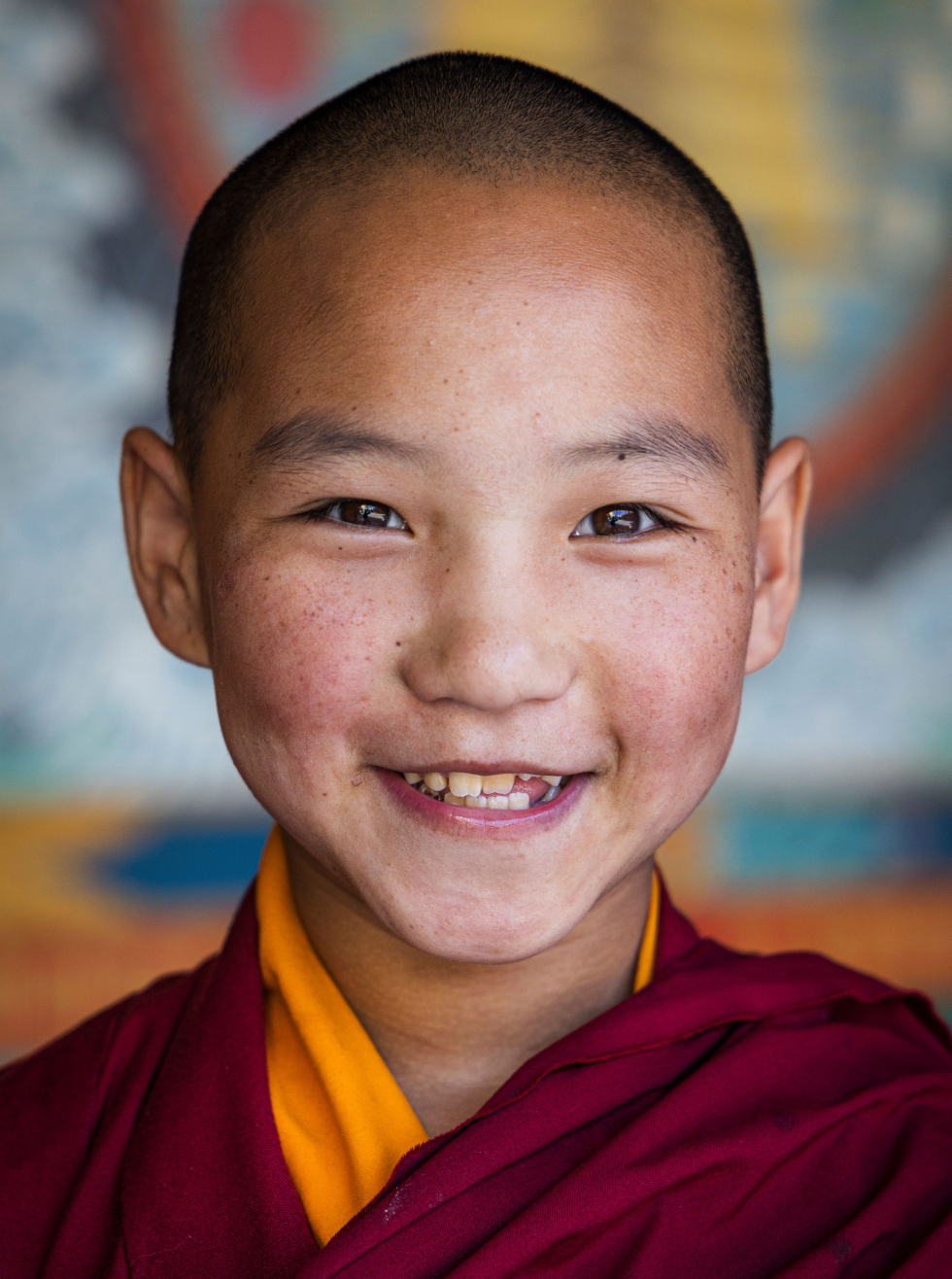 Through some of our nuns her mother knew Tek Chok Ling Nunnery and she bought her here. She was so happy to become a nun and stay with many friends and study together. She became a nun in November 2021. She says she is happy at Tek Chok Ling Nunnery and likes to learn all the subjects. Her best subjects are Tibetan and English.