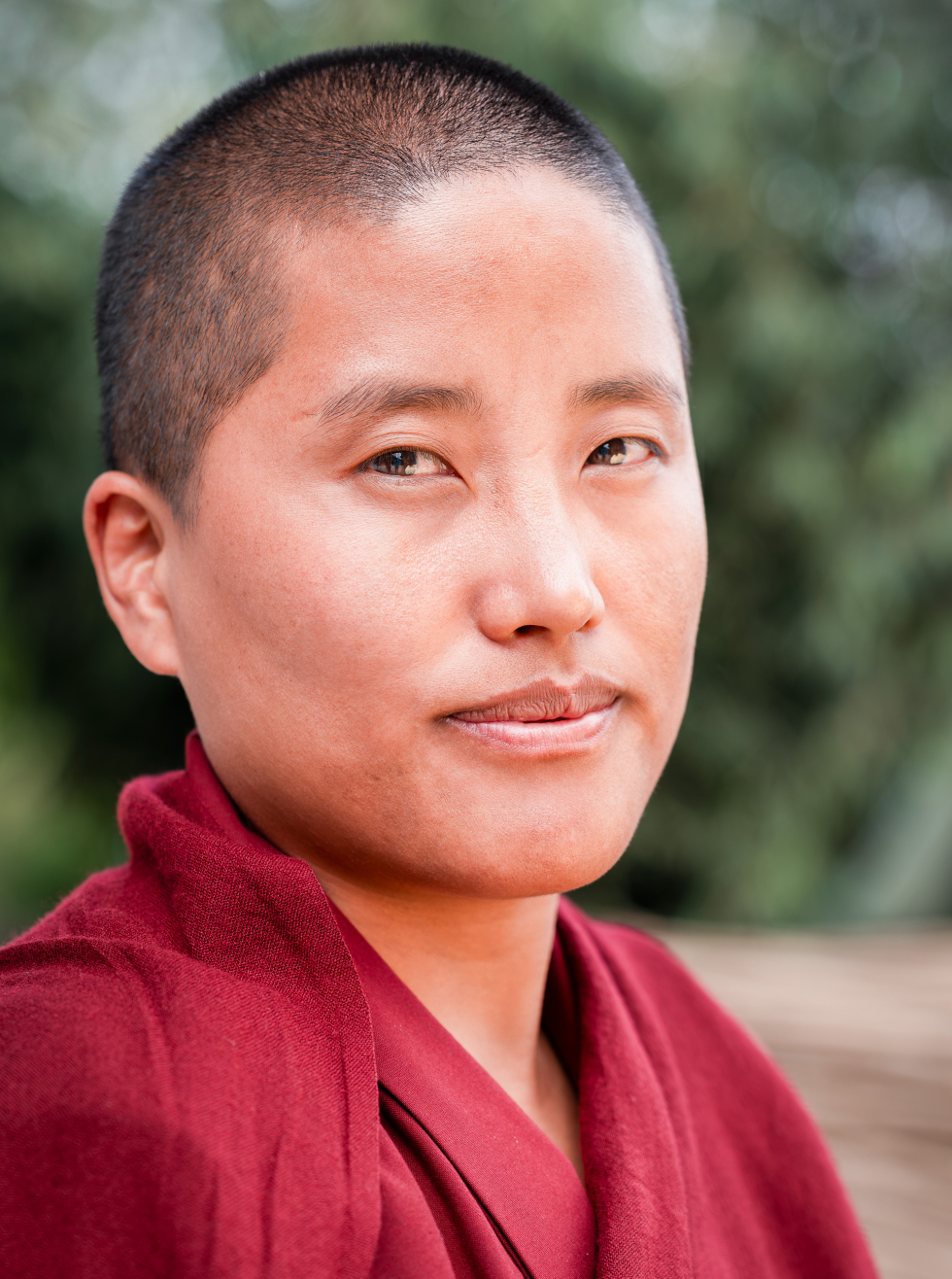Ani Karma Rinchen Lhamo is from Menjee Gewog Lhuntse, Bhutan. She has six sisters and one brother. Her parents as well as her siblings felt she should not become a nun. However, she insisted and ran away from home to fulfill her desire to become a nun. She has not been to the government school, but she completed the non-formal education provided by the Royal Government of Bhutan for the children of local villagers and farmers. She would like to join the shedra after completing her basic studies at the nunnery. She hopes to teach others what she learns about buddhism.