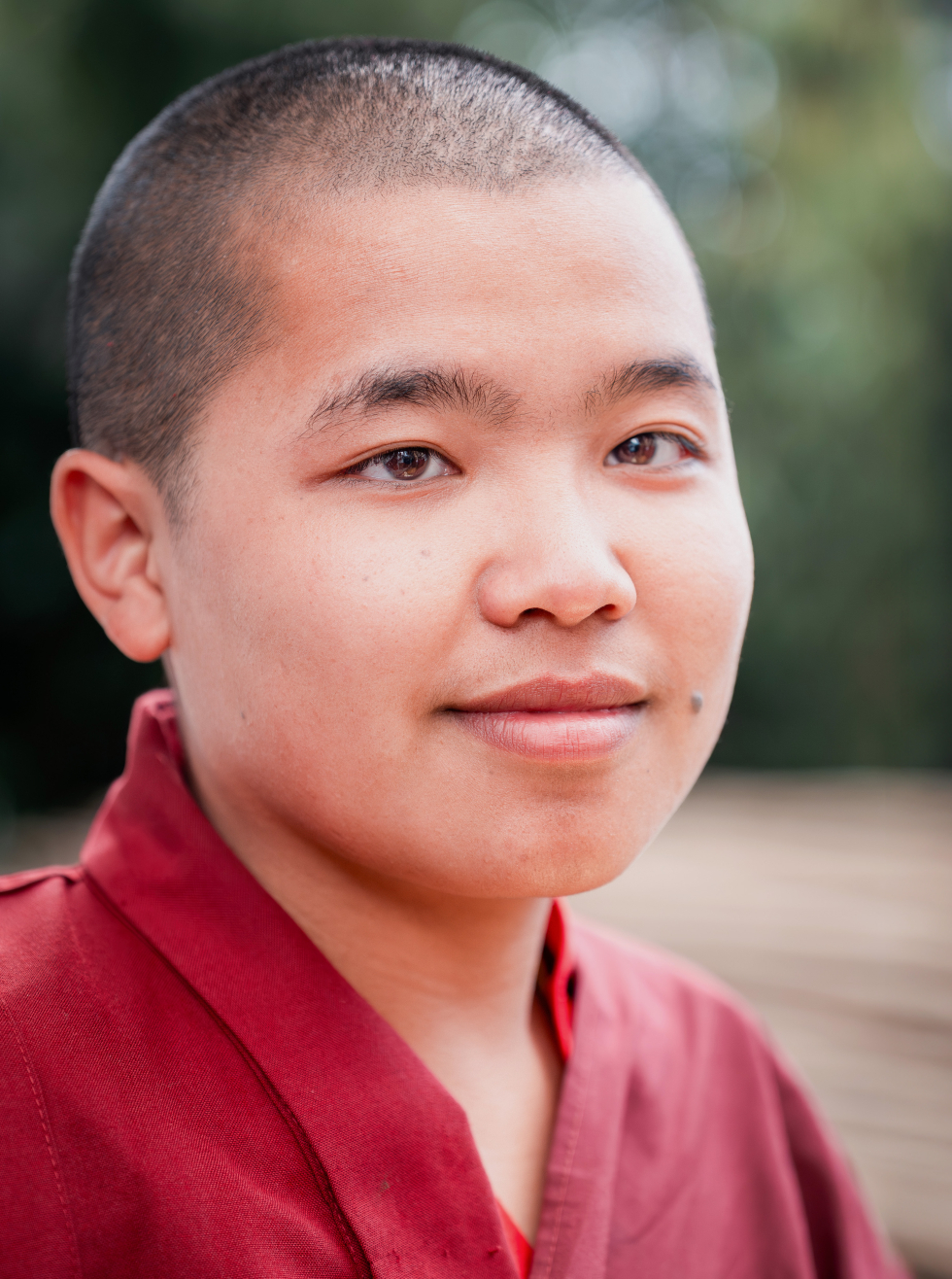 Ani Karma Yangzom comes to Karma Drubdey Nunnery from the Tashiphug Monastery in the Gelephu region in southern Bhutan. She was sent to the monastery by her mother to study buddhism. She would like to be a good nun and to fulfill her mother’s wishes. Her aunt felt that Karma Drubdey would be a much better place for her as there were only a few nuns at Tashiphug Monastery and so she brought her to Karma Drubdey. Now she is studying at Kuengarabten Primary school with the other young nuns. She is happy with her friends and she likes going to school. She hopes to joint the shedra in the future.