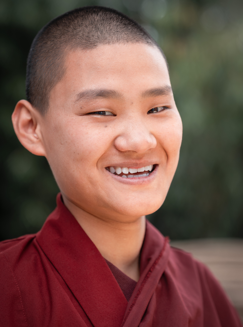 Ani Tandin Biddha joined the nunnery in 2014. She is the cousin of Ani Karma Thinley Yandron who joined the nunnery earlier in 2014. Ani Tandin Biddha’s grandmother brought her to the nunnery because her mother, after getting drunk, would hit her. Her grandmother is hoping that the nunnery will provide her with an education, and a safe and better life. Ani Tandin Biddha is very happy at the nunnery. She would like to be a Nyerpa when she grows up. For now she likes playing ball, blowing up balloons, going to bed early and getting up late. She particularly likes Ani Yeshi because she has given her shoes and many other things. And she likes her teacher Ani Jamyang Chotsho who is very kind to her.