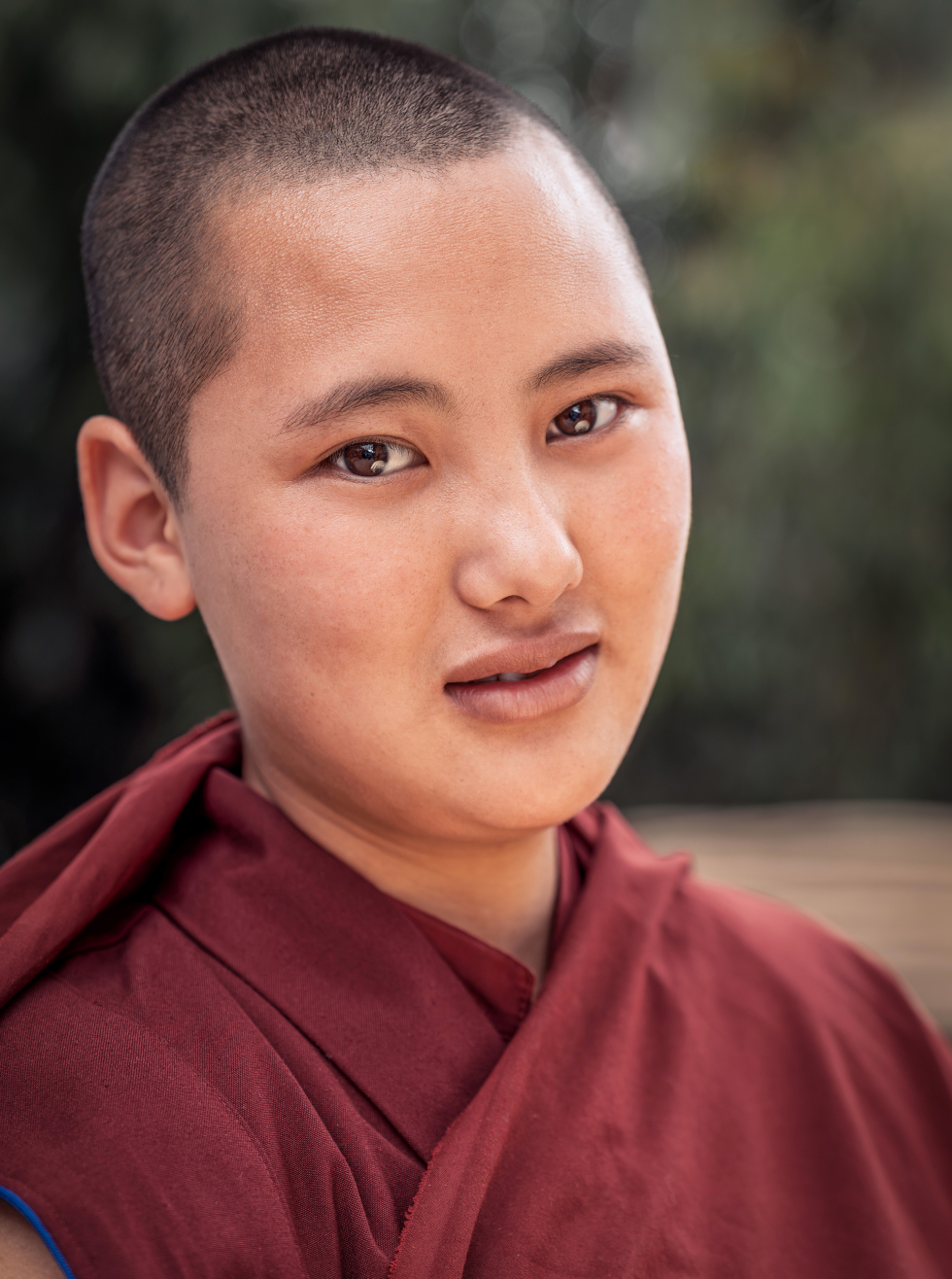 My name is Yangchen Palmo. I was born on 25th May 2008 in the village of Khaling, Trashigang. I studied through grade 7 in the government school. There are 5 in my family: my mother, elder brother, grandfather, grandmother and me. My mother’s name is Pema Wangmo. She works in the fields and looks after my grandparents. My father and mother divorced when I was young. I love to play. I had many friends in my village school. I joined the nunnery on 4th February 2023. I found many friends here and some are my cousins. I am also learning to speak Tibetan. In the future, I hope to complete the shedra and become a good teacher. I am happy to be a nun.